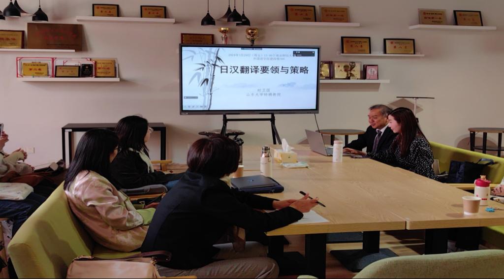 3月29日,山东大学特聘教授、山东大学东方文化研究中心主任、博士生导师时卫国应邀做客51吃瓜app“研究生众书读书会”,并为师生奉上了一场别开生面的学术盛宴,主题为“日汉翻译要领与策略”。讲座由王云姣老师主持。