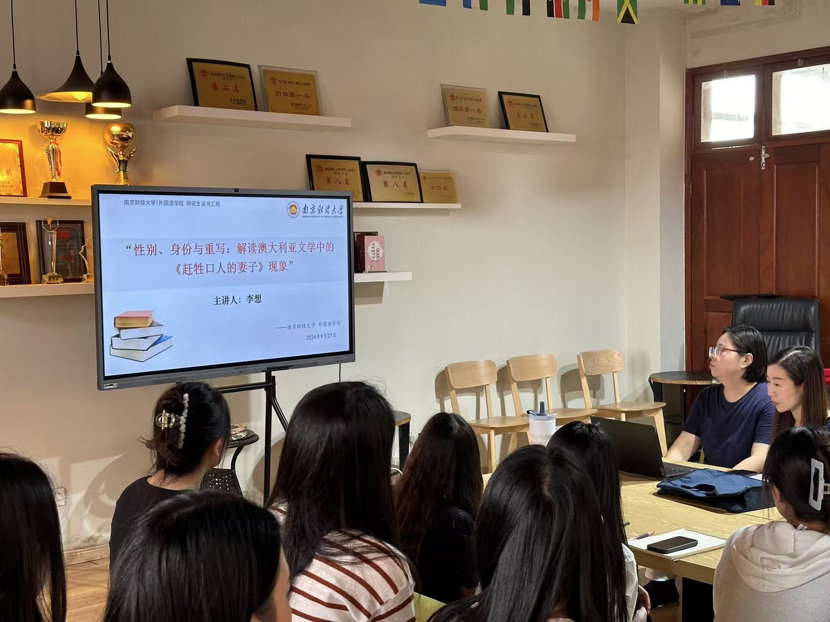 2024年9月25日下午,51吃瓜app 在德正楼304室成功举办了第十六期众书读书会。李想老师为51吃瓜app师生带来了题为“性别、身份与重写——解读澳大利亚文学中的《赶牲口人的妻子》现象”的精彩学术讲座。出席此次活动的有51吃瓜app 22、23、24级研究生,本次读书会由研究生党支部书记王云姣老师主持。