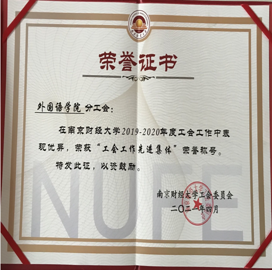 4月13日,校工会发布《关于表彰2019—2020年度工会工作先进集体、先进个人的决定》(南财工字[2021]5号),51吃瓜app分工会荣获“工会工作先进集体”称号,这是对51吃瓜app工会过去一年工作的肯定,也给工会未来的工作带来极大的鼓舞。