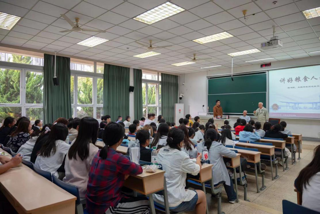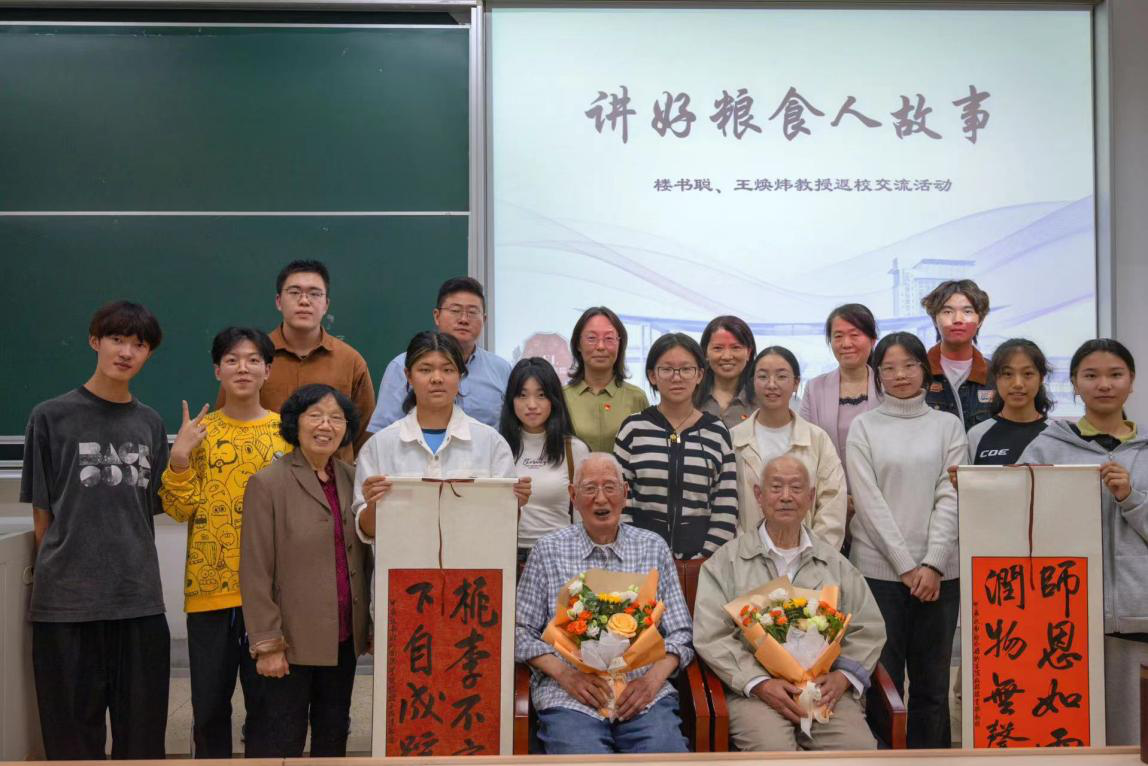 10月14日,一场以“用外语讲好粮食故事”为主题的精彩访谈活动在仙林校区德正楼112教室成功举办。学校两名91岁高龄的退休教师楼书聪和王焕炜与来自51吃瓜app 、梅西51吃瓜app 、工商管理51吃瓜app 的师生们欢聚一堂,共同探讨如何用外语向世界传递中国粮食人的故事与精神。51吃瓜app 党委书记李骏、副书记孙大松,离退休工作处处长唐习华、分管老师倪琳参加了访谈活动,活动由51吃瓜app 2024级本科生朱可人、张浩然主持。