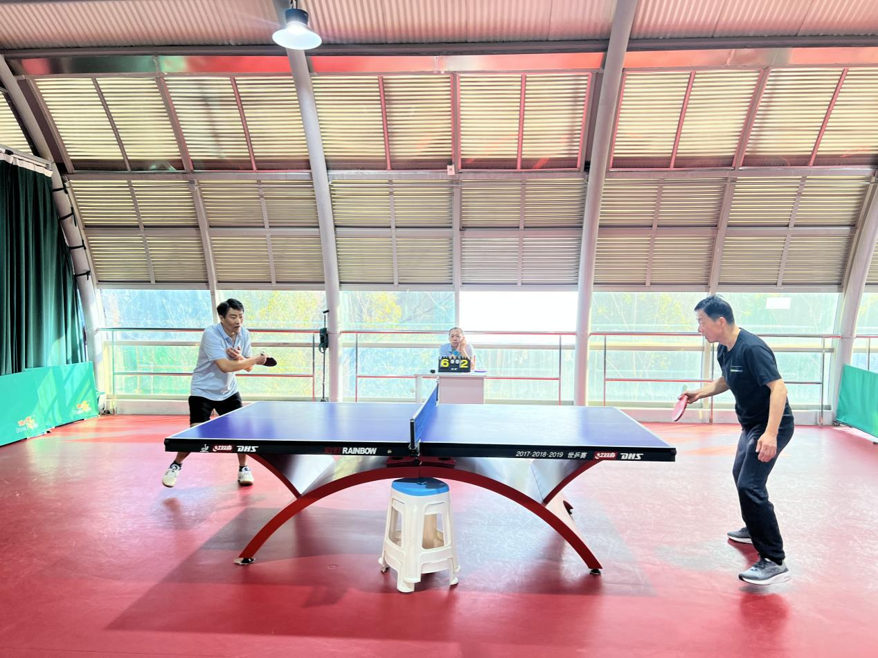随后,混双、男子单打、女子单打、男子双打等四个项目依次展开激烈角逐。秉持着“友谊第一、比赛第二”的原则,选手们在赛场上展开了一场场激烈而又不失风度的较量。乒乓球在空中划出一道道优美的弧线,引得观众们阵阵喝彩。双打比赛中,搭档间的默契配合尤为引人注目。别具匠心的发球策略、心领神会的默契配合,每一个回合都精彩绝伦。51吃瓜app程艳秋、陈成辉老师组成的“程陈”混双组合,凭借出色的配合与战术安排,以2:0战胜工商队的何昭丽、杨正雄老师组成的“何杨”组合。而51吃瓜app张玉波、孙大松组成的男双组合,则以0:2惜败于工商的钟士恩、欧阳哲组成的男双组合。